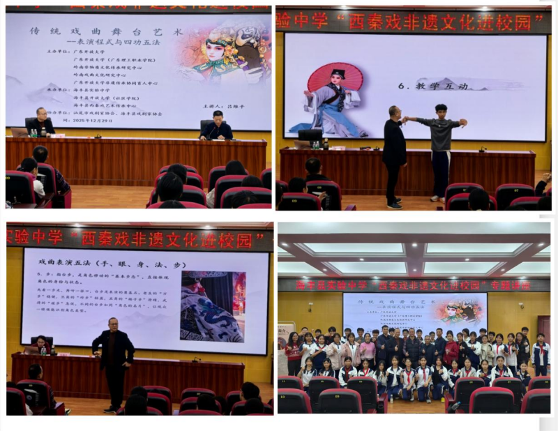 为深入贯彻落实中华优秀传统文化传承发展工程,推动地方戏曲艺术在青少年群体中的普及与活态传承,切实增强学生对本土非物质文化遗产的认同感与文化自信,近日,“西秦戏非遗文化进校园”专题讲座在海丰县实验中学多功能报告厅成功举办。