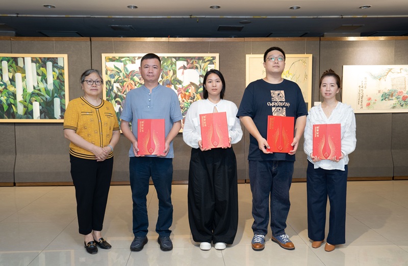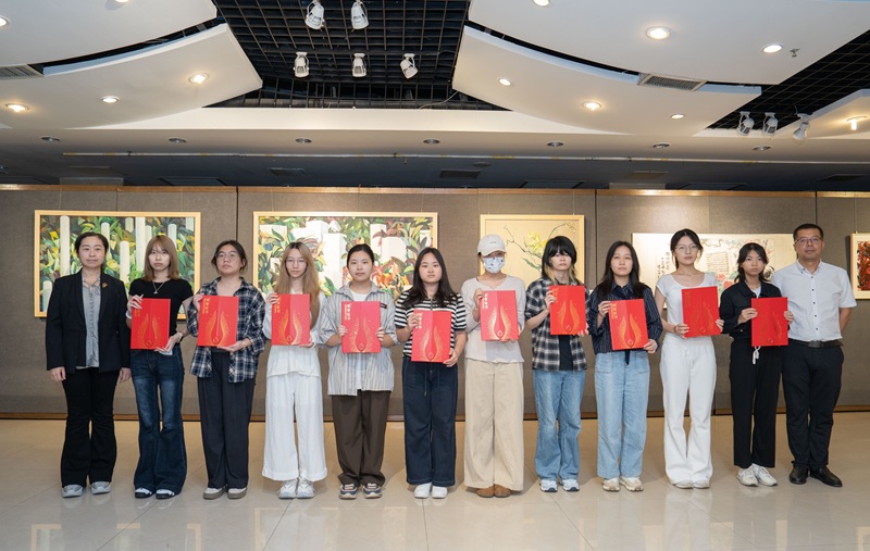 开幕式上,与会领导与嘉宾分批次为参展师生代表颁发参展证书。仪式结束后,全体人员合影留念并共同观展,在浓厚的艺术氛围中感受美育的芬芳。