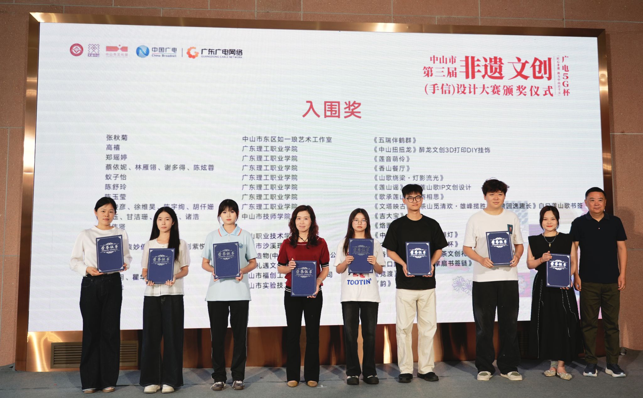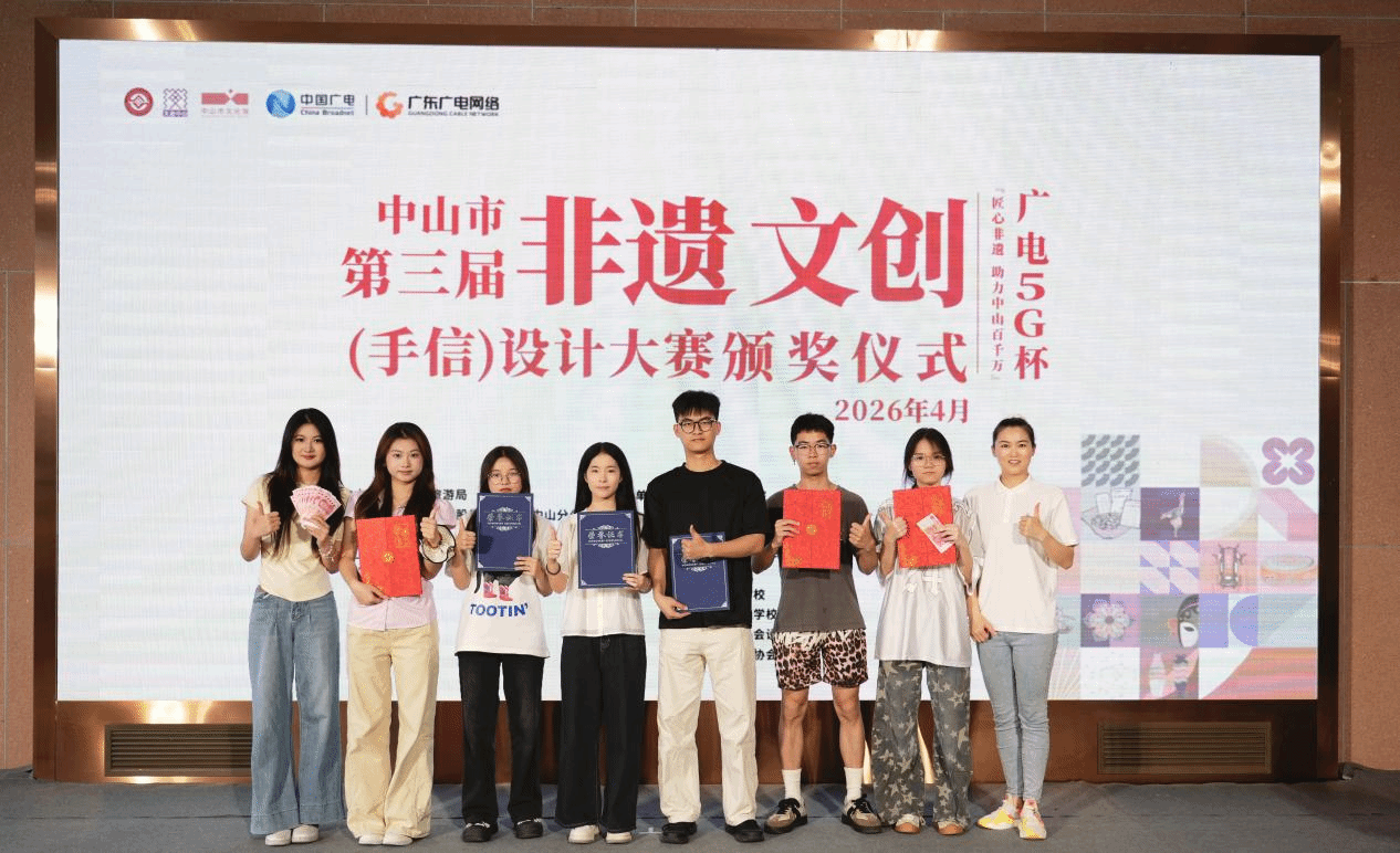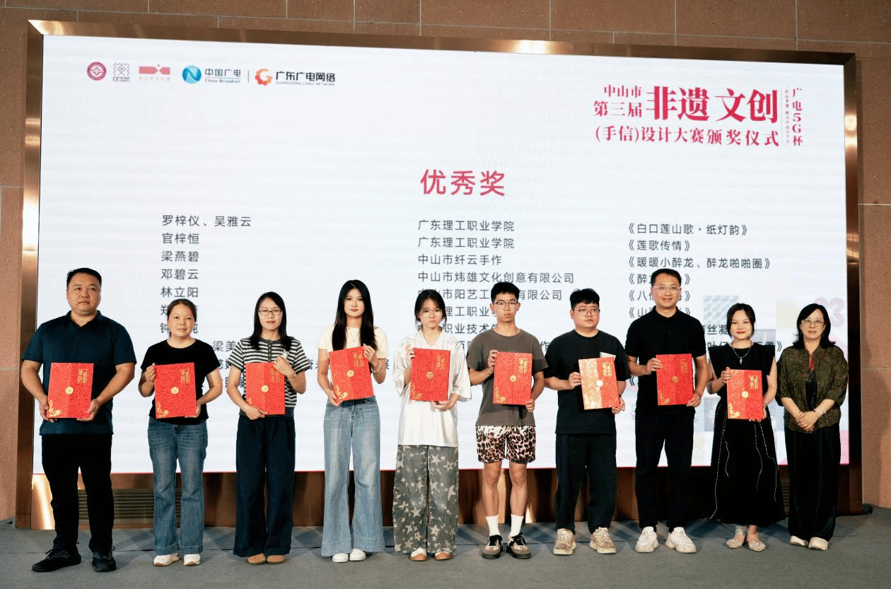 4月19日下午,由中山市广电文化旅游局主办、广东理工职业学院协办的广电5G杯“匠心非遗 助力中山百千万”2025年中山市第三届非遗文创(手信)设计大赛在中山市文化馆举办颁奖仪式。我院多名学子在本次比赛中脱颖而出,斩获不俗战绩。